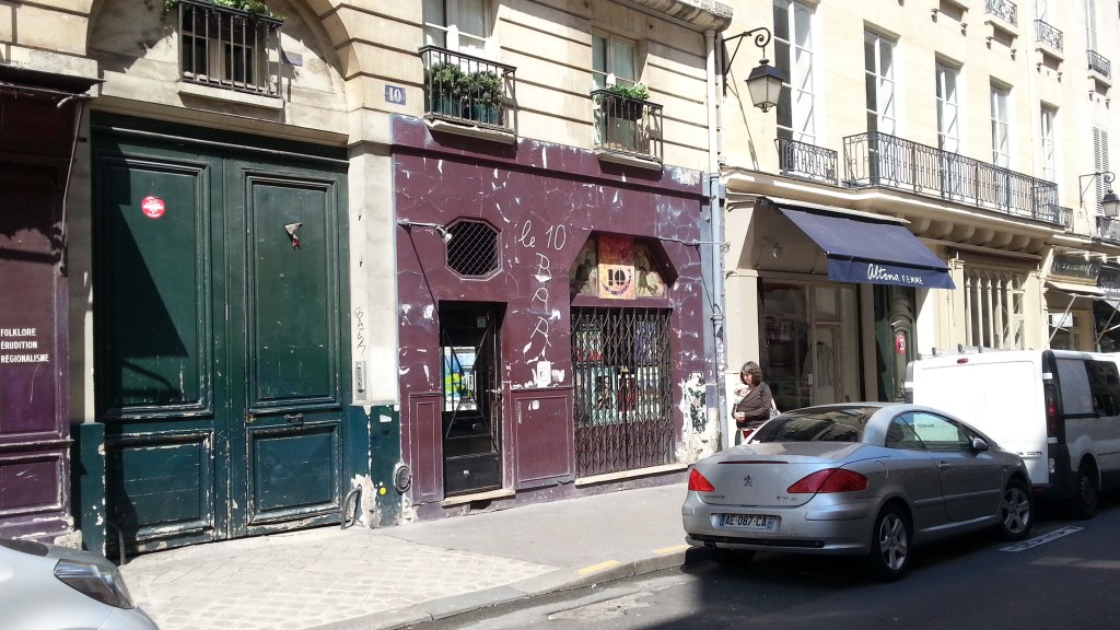 In Chapter 22, I describe a scene in the below bar, Le 10 Bar. Right next door, was the original location of Shakespeare and Company. I describe a scene that Hemingway reportedly made on this very street after receiving a bad review.