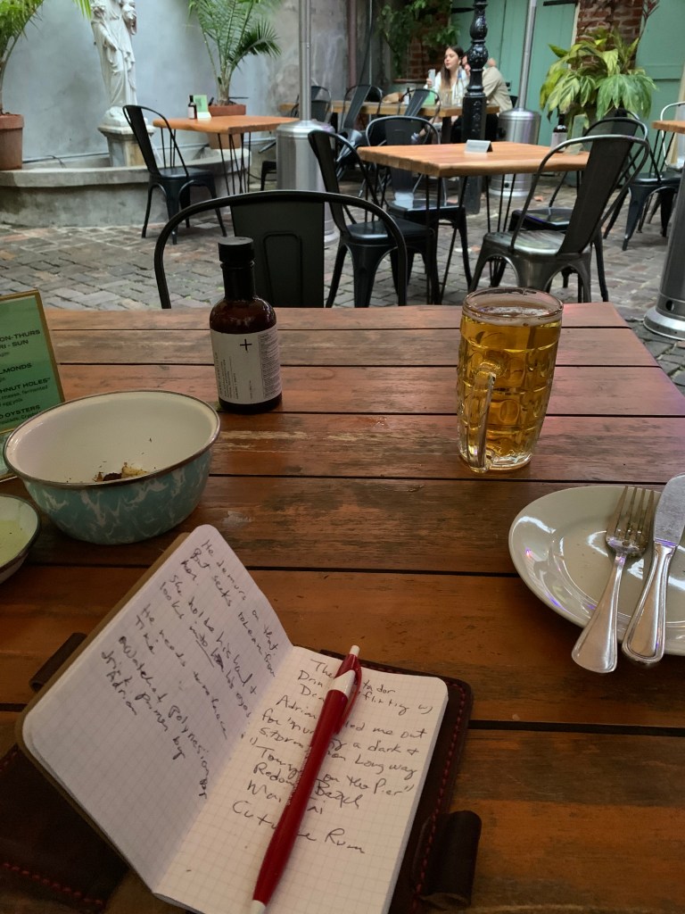 Writing a scene for “The Sommières Sun” in 2020 at Longway Tavern in New Orleans (now The Will & The Way).©CE Hunt, 2020